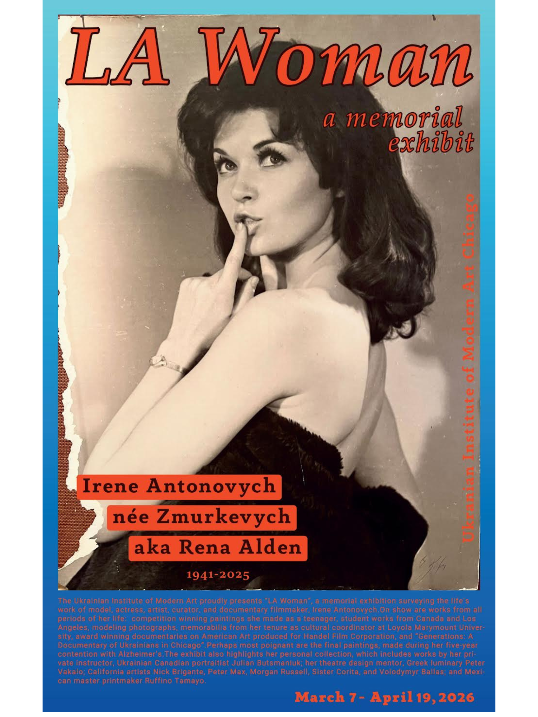 The Ukrainian Institute of Modern Art proudly presents L.A. Woman, a memorial exhibition surveying the life’s work of model, actress, artist, curator, and documentary filmmaker, Irene Antonovych.